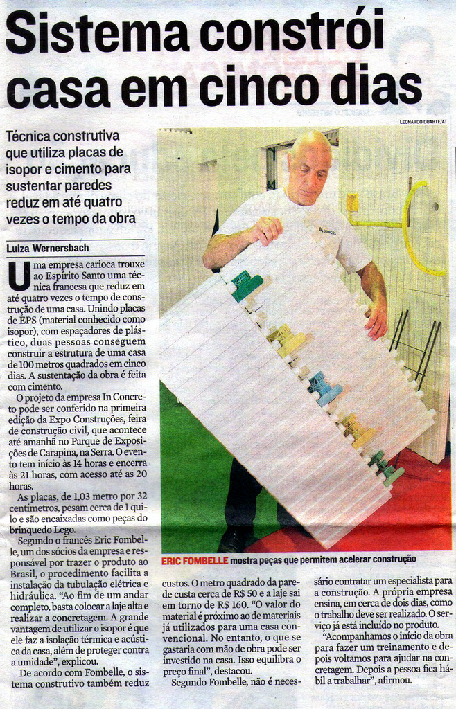 DownloadTécnica construtiva que utiliza placas de isopor e cimento para sustentar paredes reduz em até quatro vezes o tempo da obra...